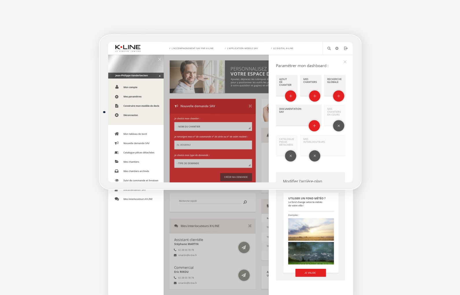 Pour répondre à cet aspect commercial, nos équipes UX/UI ont créé un outil se présentant comme une solution complète pour la gestion de l’espace professionnel des revendeurs K Line.